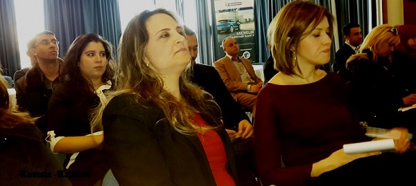 Photo :les représentants de la presse avec en avant-plan Mme Neila Zargouni du partenaire STIP /Pneus AMINE –