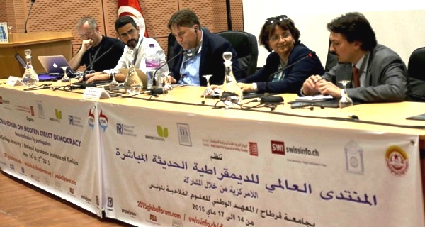 Tunis – Ouvert avant-hier 14 mai 2015 à l’INAT en présence du chef du gouvernement M. Habib ESSID, le secrétaire général de l’UGTT M. Houcine ABBASI et de personnalités politiques et scientifiques spécialistes de la démocratie directe, le Forum Mondial sur la Démocratie Directe Moderne s’est poursuivi ce matin en débattant des thèmes et des discussions telles que »La démocratie directe et participative : pourquoi en Tunisie ? », alimentant des débats traitant les facteurs ayant contribué à la réussite de la transition politique. Des inventaires ont été également tenus sur les défis à relever par les citoyens tunisiens pour sauvegarder leur révolution.