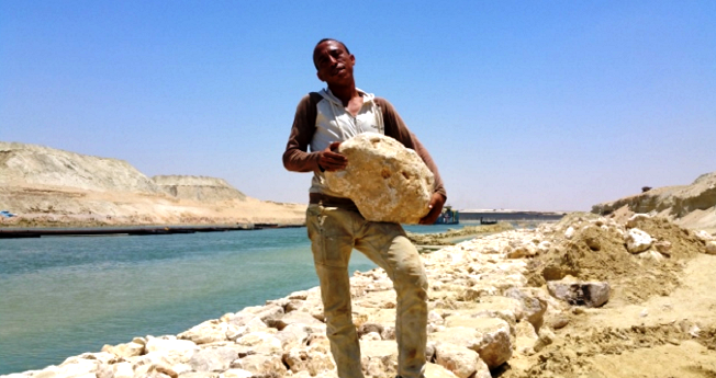 Il travaille sur le projet du nouveau canal de Suez depuis six mois comme ingénieur assistant. C’est une journée très chaude de la mi-juin, le soleil tape fort sur le site de construction et l’inauguration du nouveau canal est à tout juste quelques semaines. Mostapha a le moral haut. Il fait partie d’une équipe de trois, travaillant inlassablement à habiller les berges du canal de pierres locales. C’est un volet essentiel du projet, qui doit être complété en entier sur les 35 kilomètres de la voie navigable avant le passage du premier navire.