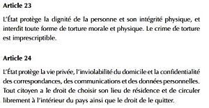 Les articles 23 et 24 de la Constitution tunisienne garantissent notamment la dignité de la personne et la protection de la vie privée