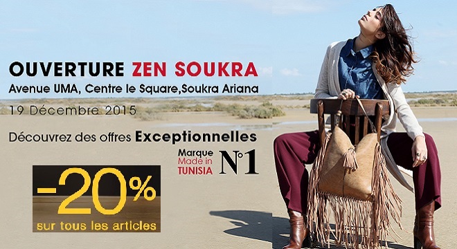 Moins d’une semaine après l’ouverture d’une boutique de deux étages dans Tunisia Mall aux berges du Lac 2, la première chaîne de magasins de mode en Tunisie ouvre son 28èmepoint de vente. Avec près de 1500m² de surface, le plus grand magasin ZEN en Tunisie s’installe au deuxième étage du centre commercial Le Square. Le nouveau fleuron de la marque englobe l’intégralité de l’offre mode avec des vêtements de qualité au meilleur prix pour toute la famille : Femme, Homme, Enfant et Bébé.