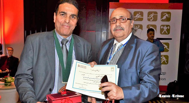 Tunisie (UAPS) – Tarak Gharbi, le journaliste de La Presse qui a roulé sa bosse un peu partout (Le Sport, Le Temps, Tunis-Hebdo, France-Presse, Le Quotidien, La Presse…) était, ce samedi 26 décembre 2015 au soir, parmi les journalistes tunisiens honorés par l’Union de la Presse Sportive Arabe.