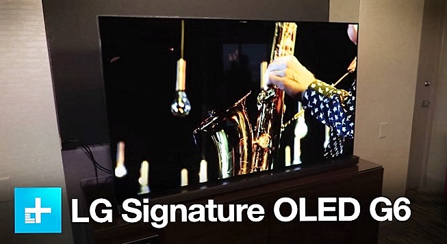 Le téléviseur OLED LG SIGNATURE dispose du design unique d’image sur verre de la société, qui bénéficie d’un panneau OLED ultra-mince de 2.57 mm avec un verre translucide à l’arrière et un système de hauts parleurs avec barre de son frontale.