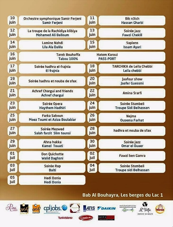 Festival « Les Arts du Lac » ou « Founoun Al-Bouhaira », du 10 juin au 5 juillet 2016, aux Berges du Lac (programme)