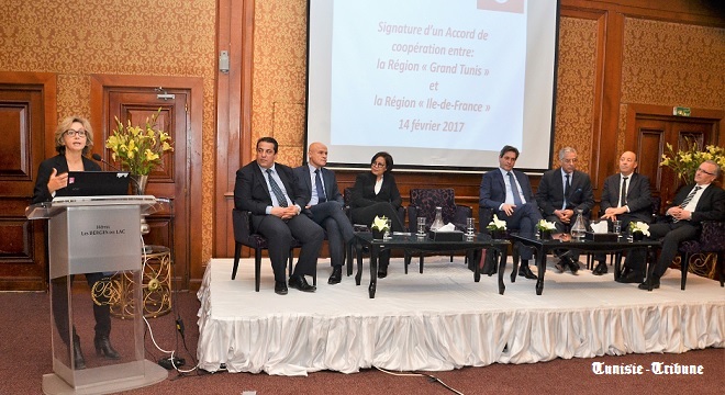 Tunisie-Tribune – Valérie Pécresse, Présidente de la région Île-de-France, Othman Nasrou, Vice-président chargé de l’action internationale et du Tourisme, et Faten Hidri, Vice-présidente chargée de l'Enseignement supérieur et de la Recherche, sont venus à Tunis les 13 et 14 février 2017, dans le but de signer l’accord de coopération décentralisée avec les conseils régionaux des gouvernorats du Grand Tunis (Tunis, Ariana, Manouba et Ben Arous) et de renforcer les relations bilatérales régionales.