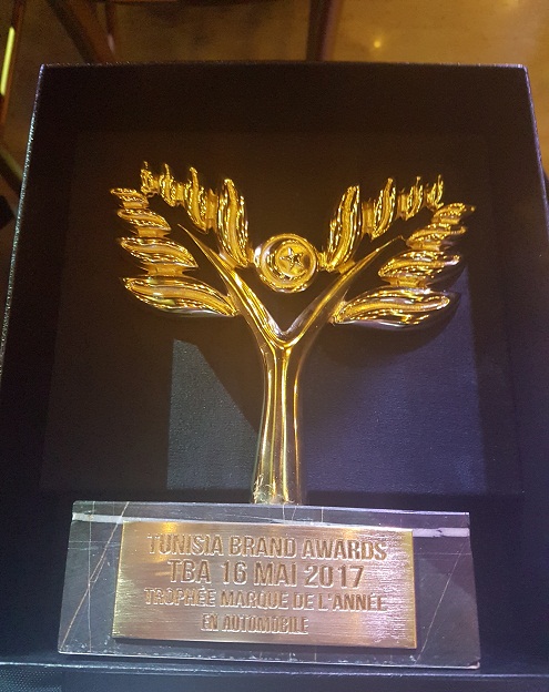 Le trophée a été remis à Mr Mehdi Mahjoub, directeur général de City Cars, concessionnaire automobile de la marque Kia en Tunisie, lors de la cérémonie des TBA tenue le 16/05/2017 au Palais des congrès.