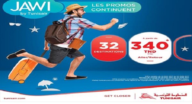 Les niveaux tarifaires au départ de la Tunisie sont offerts à partir de 340 TND TTC