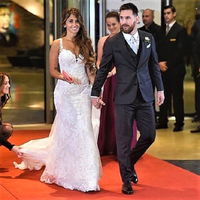 Le couple s’est uni à Rosario, dans le cadre d’une cérémonie civile. Pour l’occasion, le footballeur a laissé au vestiaire ses crampons et opté pour un costume gris très chic. Quant à sa belle, elle s’est présentée sous les flashs des 157 photographes accrédités dans une robe sirène blanche, sur laquelle tombait en cascade sa longue chevelure. Radieux, le couple a joué le jeu s’embrassant et saluant la foule. Un moment de bonheur qui s’est poursuivi par une soirée endiablée aux côtés de leurs familles et amis.
