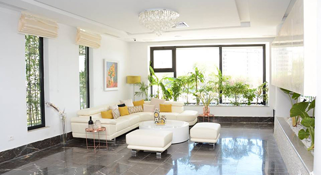 Leila CHERIF a particulièrement soigné la décoration du lieu. Des objets anciens et typiquement tunisiens, chinés partout par Leila, s’insèrent parfaitement bien dans ce décor à la fois moderne et épuré. Lumineux, aussi, de par le choix des grandes baies vitrées qui laissent partout entrer la lumière… Les nombreuses plantes vertes font le reste et renforcent la naturalité de ce lieu magique.
