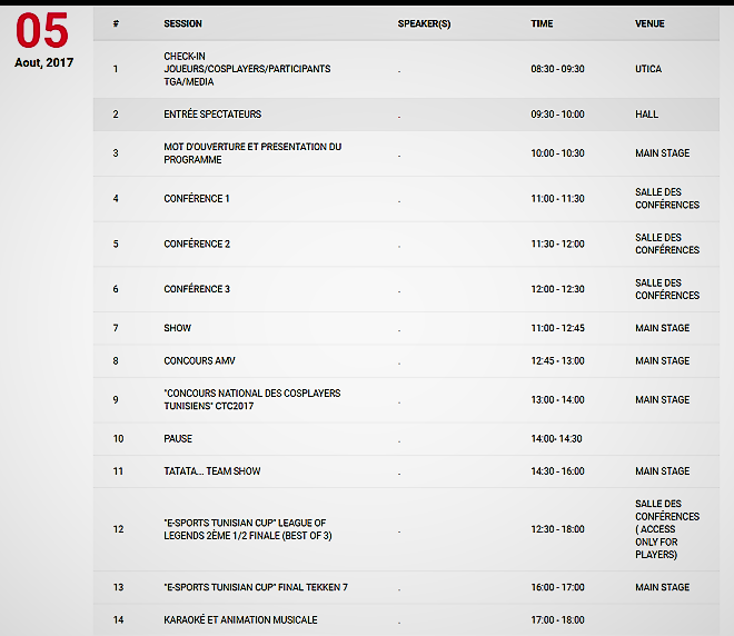 Pour vos inscriptions aux compétitions vous pouvez consulter le site web : http://carthagegameshow.com/ (Rubrique Compétitions)