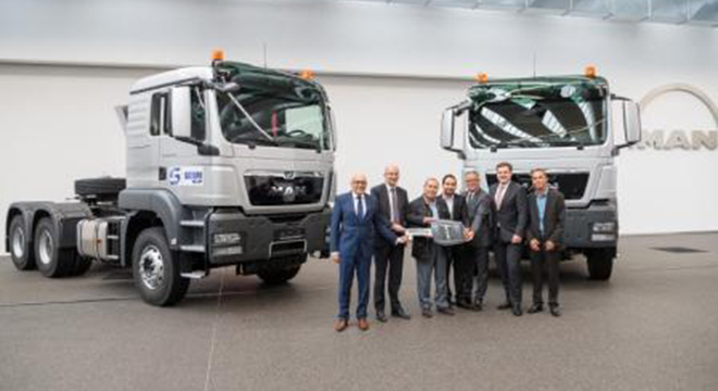 Cette livraison, qui représente la plus importante commande de camions MAN en Tunisie jusqu’à ce jour, s’est déroulée au Truck Forum de MAN à Munich en présence de M. Jeroen Lagarde, Président de la région commerciale Overseas de MAN et M. Adel Lünz, Directeur Général du Centre Importateur MAN pour l’Afrique du Nord, de l’Ouest, de l’Est et centrale. M. Habib Sebri, ainsi que M. Saber Sebri, Directeur commercial de ce même groupe, qui avaient spécialement fait le déplacement en Bavière pour cette occasion, ont reçu les premiers camions marqués au nom de SEBRI Group. Cette commande fait ainsi du Groupe SEBRI le client principal en camions de MAN Truck & Bus en Tunisie.