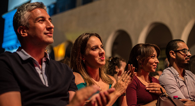 C’est dans un cadre magique et féerique que Zeineb El Melki, animatrice à IFM et directrice de la 1re édition du festival Juste Rire a ouvert la deuxième saison du festival. Juste Zgary a enchainé par un stand-up de folie. D’ailleurs, les éclats de rire et la bonne humeur du public venu en masse remplissaient le somptueux palais d’Ennejma Ezzahra.