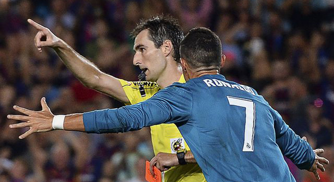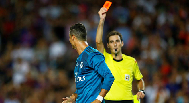 Ronaldo a été exclu à la 83e minute dimanche au Camp Nou lors du match aller de la Supercoupe d’Espagne après avoir écopé d’un carton jaune pour avoir enlevé son maillot en célébrant son but (80e), puis d’un second avertissement discutable pour simulation dans la surface. Incrédule, Ronaldo a poussé dans le dos l’arbitre avant de quitter la pelouse.