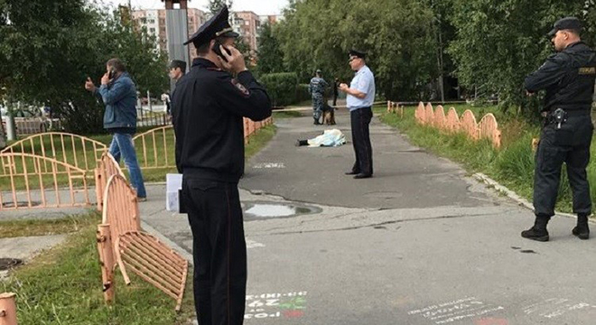 Des images diffusées par des sites d’information et chaînes de télévision russes montraient le corps de l’attaquant sous un drap blanc, un chien policier inspectant le cadavre. D’autres images montraient un blessé effondré sur un banc dans une flaque de sang.