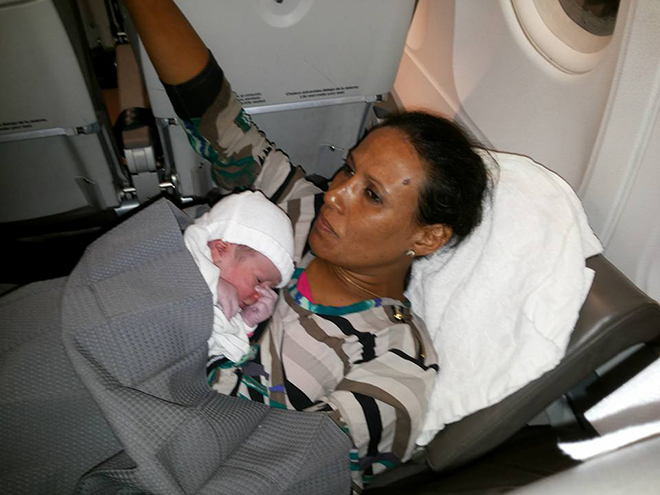 L’accouchement s’est bien passé, la maman et son bébé vont très bien et les passagers, émus, ont réservé au nouveau-né un chaleureux accueil avec applaudissements et youyos quand il a poussé son premier cri.