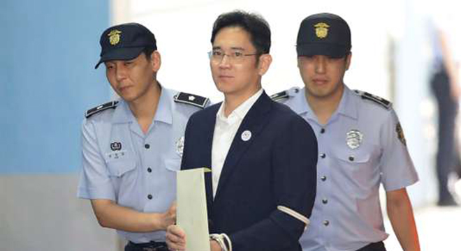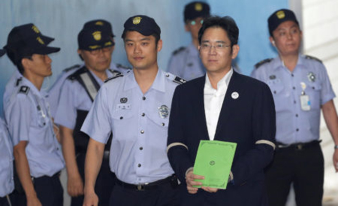 Tunisie-Tribune (Lee Jae-yong – Samsung) – vendredi 25 août 2017, l’héritier de l’empire Samsung, Lee Jae-yong, 49 ans, arrive au tribunal du district central de Séoul en costume sombre, menottes aux poignets.