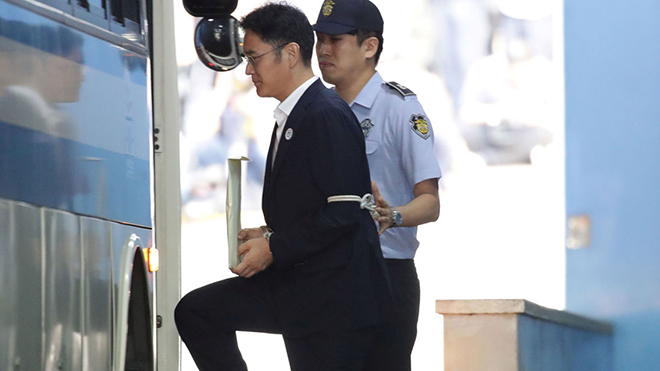 Il a été condamné à cinq ans de prison après avoir été reconnu coupable pour corruption, abus de bien sociaux, parjure et d’autres chefs en rapport avec la promesse de versement de 43,3 milliards de wons (32,5 millions d’euros) à la confidente de l’ombre de la présidente sud-coréenne Park Geun-Hye.