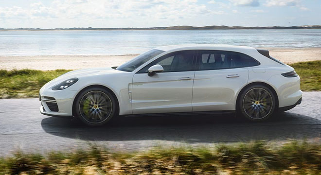 À l’instar de la déclinaison hybride rechargeable de la berline sportive Panamera, la version Sport Turismo démontre à nouveau le formidable potentiel de la technologie hybride. La stratégie hybride de la nouvelle Sport Turismo à transmission intégrale de série est héritée de la Porsche 918 Spyder, la supersportive hybride de la marque. Le modèle associe un V8 biturbo (404 kW/550 ch) à un moteur électrique (100 kW/136 ch). Dès 1 400 tr/min, la motorisation hybride délivre un couple maximal de 850 Nm. Le découpleur intégré au module hybride est commandé par un actionneur électromécanique (Electric Clutch Actuator – ECA), qui permet de réduire les temps de réponse et d’améliorer nettement le confort. La nouvelle Sport Turismo est équipée d’une transmission intégrale active pilotée par le système Porsche Traction Management (PTM), fournie de série, et d’une boîte à double embrayage Porsche PDK huit rapports, offrant un passage de rapport particulièrement rapide. Le concept de motorisation « E-performance » de Porsche permet à la voiture de franchir les 100 km/h départ arrêté en 3,4 secondes. Seules 8,5 secondes supplémentaires suffisent pour atteindre les 200 km/h, les 200 km/h départ arrêté sont donc atteints en 11,9 secondes. Sa vitesse de pointe s’établit à 310 km/h. Sur le modèle hybride rechargeable, performances sportives et efficience vont de pair. Ainsi, la consommation de carburant en cycle européen est de 3,0 l/100 km, et la consommation électrique de 17,6 kWh/100 km. En mode tout-électrique, la Turbo S E-Hybrid Sport Turismo peut parcourir 49 km sans la moindre émission et atteindre une vitesse maximale de 140 km/h. La batterie lithium-ion dispose d’une capacité de 14,1 kWh. Le temps de charge varie de 2,4 à 6 heures, en fonction du type de chargeur et du type d’alimentation.