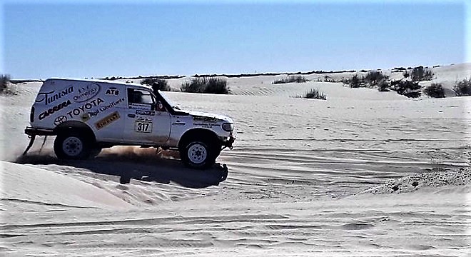 Tunisie-Tribune (Rally du chott 2017) – c’est parmi des compétiteurs internationaux particulièrement chevronnés et sur les dunes indomptables du Chott, que l’équipage tunisien conduit par Hend chaouch a réussi à se retrouver sur la seconde marche du podium de ce fameux rallye du sud tunisien.