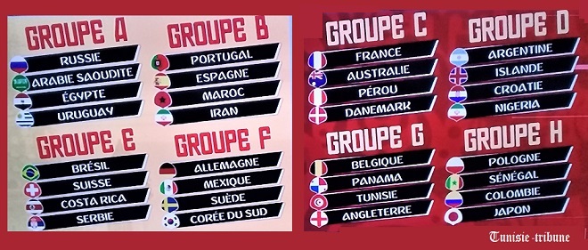 Tunisie-tribune (Coupe du monde Russie 2018) – en ce vendredi 1er décembre 2017, aux alentours de 16 h35 HT (et 18 h35 locales), la fin du suspense pour les 32 nations qualifiées pour la Coupe du monde 2018 en Russie a placé la Tunisie dans le groupe G.