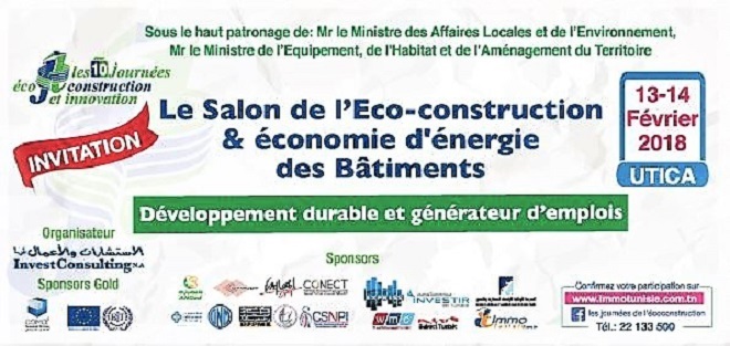 Tunisie-Tribune – Les 10e Journées de l’Eco-Construction et l’Innovation (13-14 Février 2018 à l’UTICA) mettent cette année la construction durable à l’honneur avec pour amorcer une vision prospective de l’évolution des métiers écologiques et de participer à la réussite de projets durables à forte valeur ajoutée.