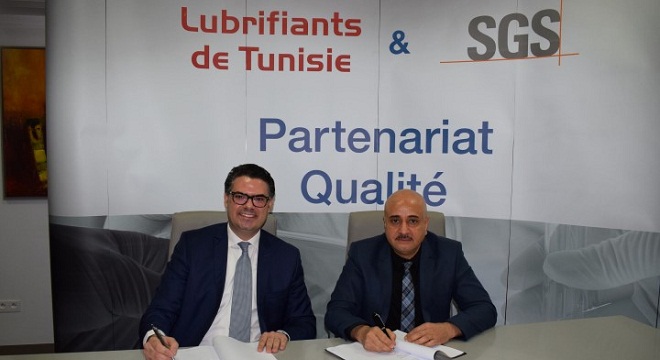 Cet accord de partenariat a été signé par M. Saleh ABDALI, Directeur Général de Lubrifiants de Tunisie et M. Tahar KTARI, Directeur régional Maghreb de SGS. Il s’agit d’une première dans le secteur de l’industrie pétrolière en Tunisie où les lubrifiants d’une société sont entièrement contrôlés et validés à l’usine par une partie tierce.