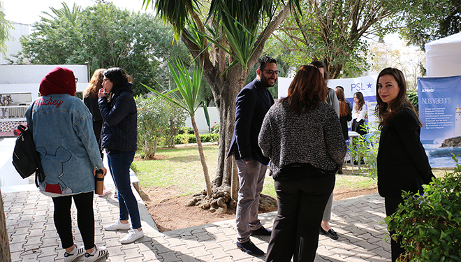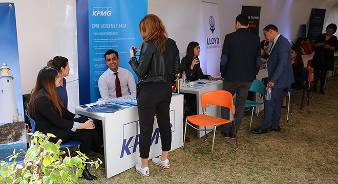 Organisée par l’Université Paris-Dauphine | Tunis sur son campus situé à El Omrane, cette manifestation d’envergure rassemble chaque année, plus de 500 étudiants (issus des établissements supérieurs de Tunis et environs) venus rencontrer plus de 30 entreprises avec pour objectif ultime: se faire connaître des étudiants, proposer des postes à pourvoir et alimenter leurs CVthèques de profils susceptibles de répondre aux critères et aux valeurs de leurs départements ressources humaines.