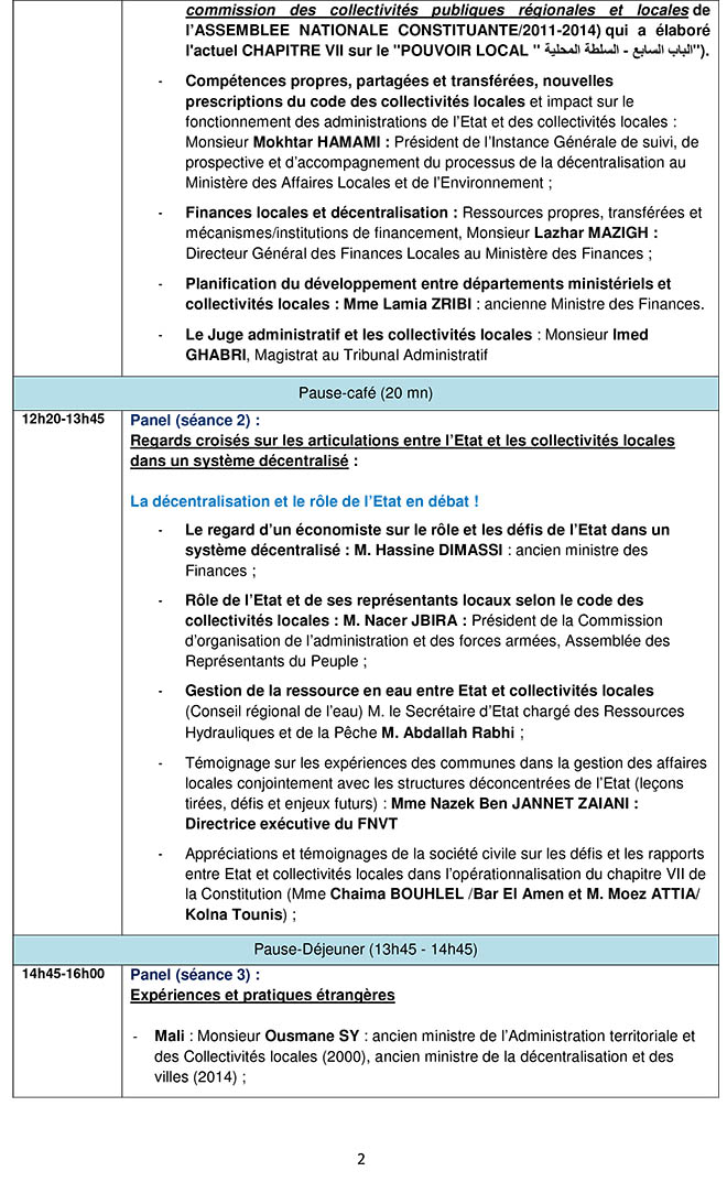Conférence internationale sur « Les rapports entre l’Etat et les collectivités locales dans un système décentralisé » les 28 et 29 mars 2018, hôtel El Mouradi, Gammarth
