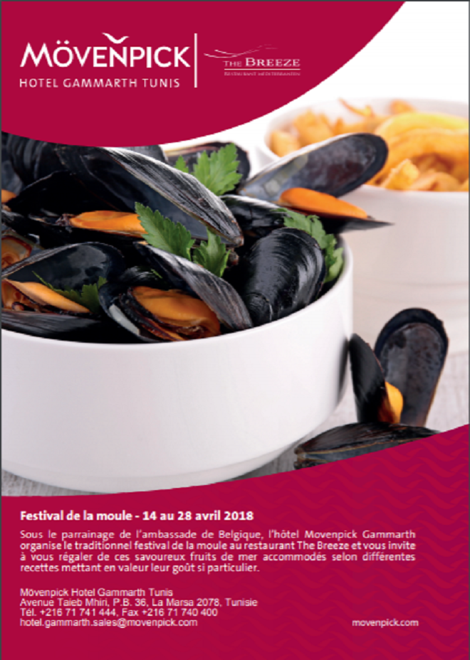 Tunisie-Tribune – 2 semaines durant et sous le haut parrainage de l’Ambassade de Belgique en Tunisie, l’Hotel Mövenpick de Gammarth Tunis vous invite à découvrir de savoureuses spécialités Belges et spécialement les Moules, ces savoureux fruits de mer accommodés selon différentes recettes mettant en valeur leur gout si particulier .