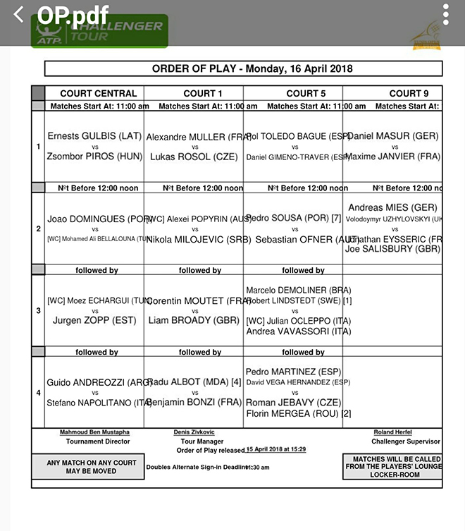 Le tableau d’aujourd’hui est marqué par la présence de notre joueur tunisien Mohamed Ali Bellalounaqui affrontera le portugais Joao Domingues.