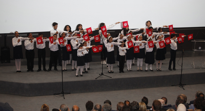 A cette occasion et avant le début de la projection, le grand chanteur Lotfi Bouchnak a présenté « Tahia » une révérence à la patrie superbement accompagné de la chorale d’enfants « Mosaïque » tous de blanc vêtus.