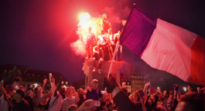 Tunisie-Tribune (Russie 2018 – la France en finale) – après avoir vaincu les Diables rouges en demi-finale du mondial 2018, les fans tricolores se sentant portés au paradis envahissent les champs Elysées, chantant à tue-tête à la gloire de l’Equipe de France. C’est la fête dans toutes les rues de Paris, le tout dans la bonne ambiance.