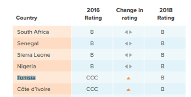 Selon le rapport, la situation s’est améliorée durant les deux dernières années en Tunisie, d’où sa note revue à la hausse de CCC à B.