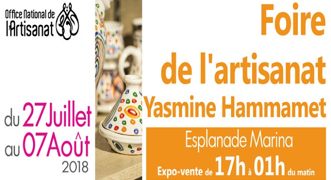 Tunisie-Tribune – La deuxième édition de la foire de l’artisanat de Hammamet se tient du 27 juillet au 7 août 2018 à l’esplanade Marina de Yasmine Hammamet.