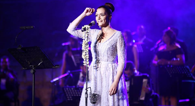 A 22h00, vêtue d’une robe d’une rare élégance, l’artiste vraisemblablement  angoissée face à une foule immense de spectateur a ouvert la soirée par sa célèbre chanson «  Walla Nhebbek » avec la participation d’un grand orchestre dirigé par le Maestro Ahmed Chaibi. L’artiste a par la suite enchainé les chansons avec une kyrielle de tubes orientaux dont « Min Ghir Lih » de Mohamed Abdelwahab et « Ala Ini » et « Layalina » de Warda.