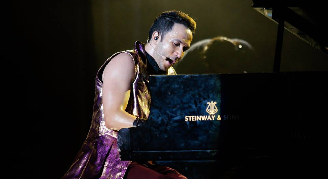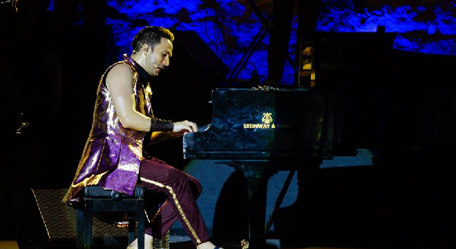 En costume doré orné d’une kyrielle de motifs colorés, œuvre du grand styliste Salah Barka qui a par ailleurs crée tous les costumes de la soirée, Hassen Doss était un roi régnant sur un royaume de musiciens et danseurs, tous contaminés par le rêve d’un artiste au cœur d’enfant qui les a transporté dans un univers de fée et de magie. Et c’est dans un déluge de décibels que l’artiste a fait son apparition sous un flot d’applaudissements soutenus.