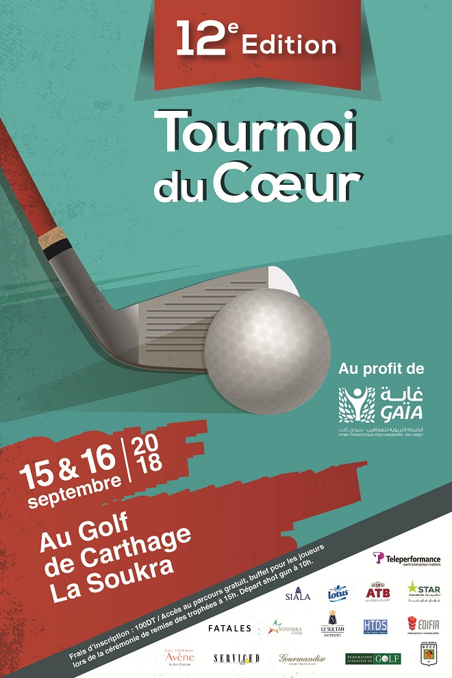 Tunisie-Tribune ( TOURNOI DU COEUR ) – Les membres de la grande famille du golf se réuniront ce weekend 15 et 16 septembre sur le parcours du Golf de Carthage la Soukra, pour célébrer comme à l’accoutumée une manifestation qui nous tient à cœur et qui est devenue familière pour nous tous depuis maintenant douze ans, à savoir LE TOURNOI DU CŒUR que l’Association GAIA de la ferme thérapeutique de Sidi Thabet a eu l’initiative d’organiser pour une très noble cause : poursuivre l’effort de prise en charge des enfants et des jeunes atteints de déficience mentale et issus de familles nécessiteuses par la collecte des fonds à traves cette manifestation golfique qui ne cesse de prendre de l’ampleur et de gagner davantage d’adeptes d’une année à l’autre.