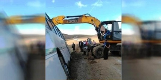 Tunisie-Tribune ( bus scolaire ) – Le délégué de Medjez El Bab a annoncé qu’un bus de transport d’élèves a glissé, jeudi 18 octobre 2018, dans un ravin, après voir dérapé dans la boue.