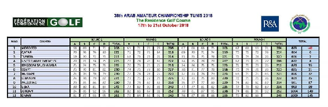 Tunisie-Tribune ( 38ème championnat arabe de golf ) – Le rideau est tombé sur la trente-huitième édition du championnat arabe de golf organisée du 21 17 au 21 octobre sur le parcours dub golf la Résidence Gammarth avec la double consécration du Maroc qui a enlevé les deux titres en individuel et par équipes confirmant son leadership a l’échelle arabe.