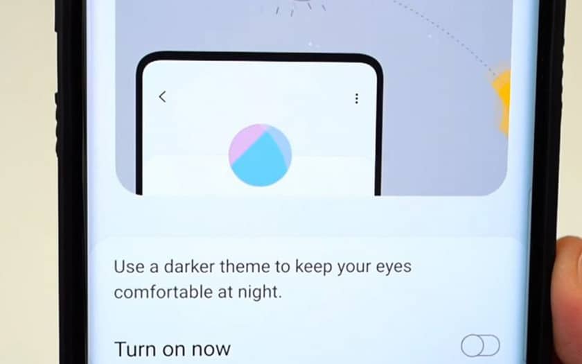 « La nouvelle version bêta du mode nuit d’Android 9.0 Pie sur le Galaxy Note 9 présente une démo presque sans bordures » explique Ice Universe sur son compte Twitter. Le leaker est convaincu que cette image représente le Galaxy S10. La bordure du haut, d’habitude plus épaisse pour accueillir les capteurs frontaux et les haut-parleurs, est presque inexistante.