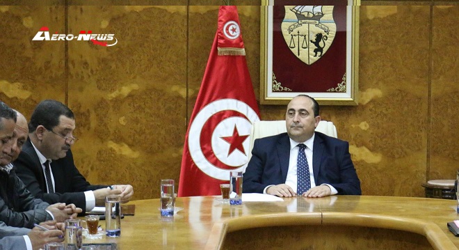 Le Ministre du Transport Monsieur Hichem ben Ahmed a présidé la séance de travail  en présence du Monsieur Elyes Mnakbi  PDG de la compagnie aérienne Nationale « Tunisair », du SG de la fédération générale du transport, monsieur Moncef Ben Romdhane et des membres du bureau syndical conduits par Monsieur Mohamed Kilani.