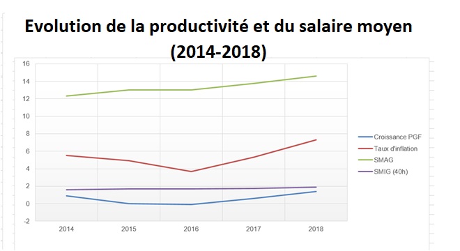 Evolution de la productivité et du salaire moyen (2014-2018)