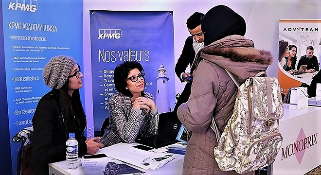 Organisée par l’Université Paris-Dauphine | Tunis sur son campus situé à El Omrane, cette manifestation d’envergure rassemble plus de 500 étudiants (issus non seulement de cet établissement universitaire mais aussi des autres établissements de l’enseignement supérieur de Tunis et de ses environs), venus à la rencontre des responsables de plus de 20 entreprises participantes.
