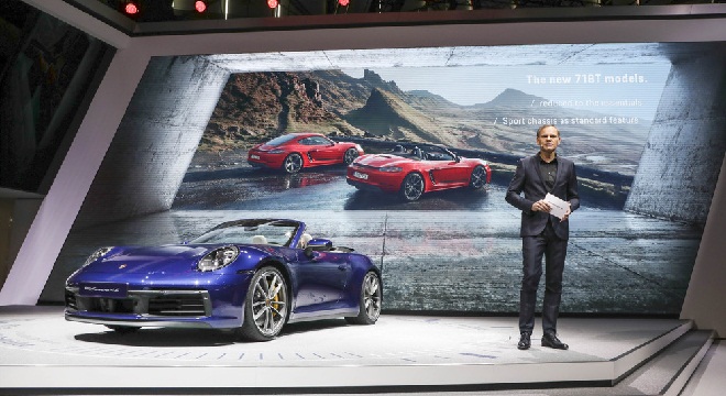 Tunisie-Tribune ( Porsche ) – À l’occasion du 89e salon international de l’automobile à Genève, Porsche lance trois modèles sportifs, dont la nouvelle 911 Cabriolet. « Chaque nouvelle génération de 911 nous impose de relever le défi qui consiste à faire évoluer le modèle emblématique de la marque pour être à la hauteur des enjeux de demain tout en préservant ce qui fait son identité », a déclaré Oliver Blume, Président du Directoire de Porsche AG. Aux côtés de la 911 Cabriolet à moteur arrière, Porsche présentera les 718 T, des modèles à moteur central de 300 ch (220 kW), au caractère résolument sportif, avec ses deux déclinaisons Boxster et Cayman. Enfin, le Macan S, avec son V6 turbocompressé à l’avant, sera également présenté en première mondiale, en digne représentant du modèle le plus vendu de la marque.
