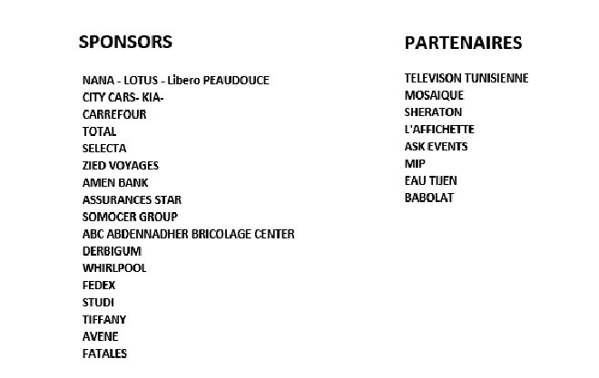Tout en rendant hommage à M. Mehdi Mahjoub pour ses efforts fournis depuis des mois déjà, à la tête de la commission du sponsoring ainsi qu’à l’ensemble de l’équipe d’organisation et leurs aptitudes à mener à bon port cette belle aventure. En effet, aujourd’hui, la famille de soutien s’est étoffée avec pas moins de 17 sponsors et 8 partenaires.