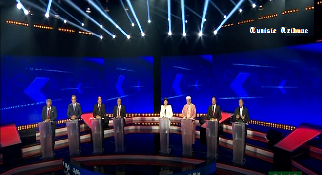 Tunisie-Tribune (Débats télévisés des Présidentielles 2019) – Les débats télévisés ont démarré aujourd’hui, samedi 7 septembre 2019. Les 9 premiers candidats de la première phase des débats sont : Abdelfattah Mourou, Omar Mansour, Mohammed Abbou, Abir Moussi, Neji Jalloul, Mehdi Jomâa, Nebil Karoui, Moncef Marzouki et Abid Briki. A noter l’absence de Nabil Karoui retenu en prison.