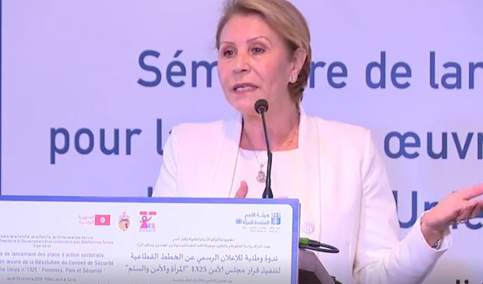 Lors d’une conférence nationale tenue, mercredi à Tunis, sur le thème “Pas de paix sans femmes”, la ministre de la Femme, de la Famille, de l’Enfance et des Séniors, Naziha Laabidi, a affirmé que la Tunisie avait adopté un plan d’action national visant à activer la résolution 1325 du Conseil de sécurité de l’ONU, se rapportant au thème “Femmes, sécurité et paix”, financé par le gouvernement de la République de Finlande, dans l’objectif de renforcer l’autonomisation des femmes, consolider leur participation dans tous les domaines et consacrer leurs droits, conformément aux engagements de la Tunisie en la matière.