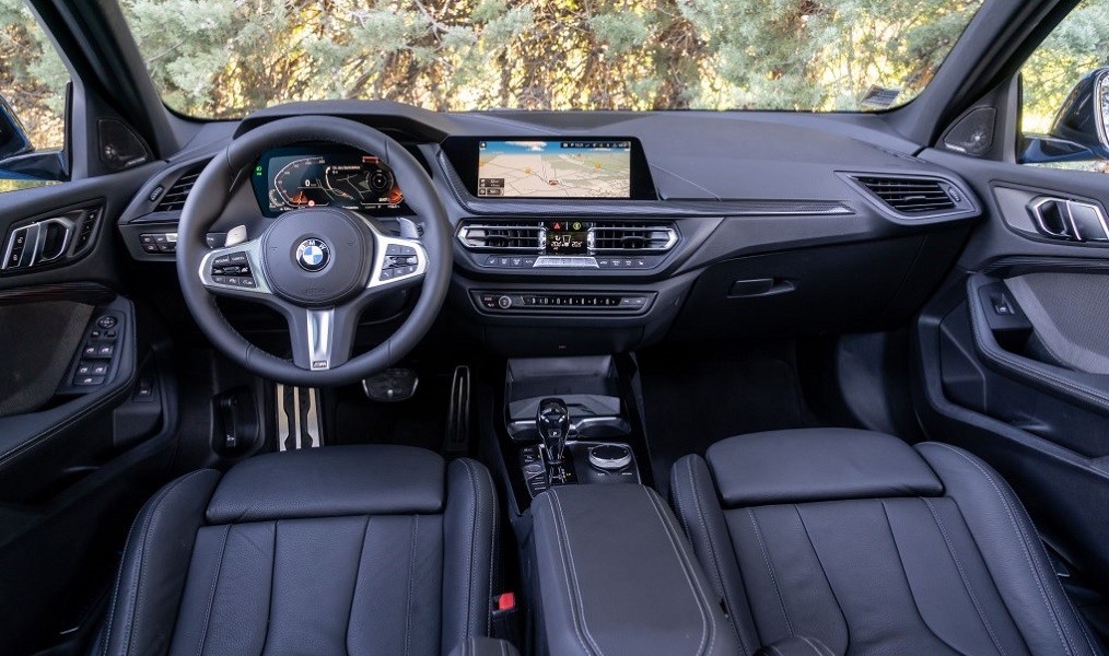 L’offre optionnelle d’info-divertissement du nouveau système d’exploitation BMW OS 7.0, doté de la commande gestuelle (en option), utilise deux écrans contigus sur le combiné d’instruments, de 10,25 pouces de diagonale chacun, avec le concept de commande à bord BMW Live Cockpit Navigation Pro. La nouvelle configuration (forme et disposition) de l’affichage reprend le design de la nouvelle grille de calandre BMW. L’écran tactile central est orienté vers le conducteur, comme c’est l’usage chez BMW, et est positionné de manière idéale dans son champ de vision. L’affichage tête haute couleur de 9,2 pouces, disponible en option pour la première fois sur la BMW Série 1, permet au conducteur de voir des informations sans quitter la route des yeux.