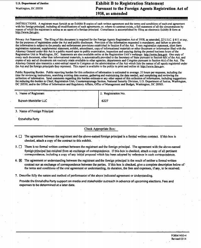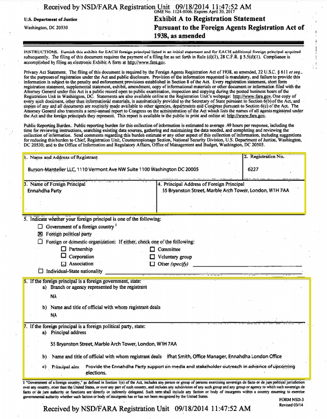 Un document a refait surface où un accord a été convenu entre le parti Ennahdha et la société Burson-Marsteller.