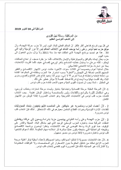 Tunisie-Tribune (Nebil Karoui) – Nabil Karoui a adressé une lettre de sa prison au peuple tunisien.